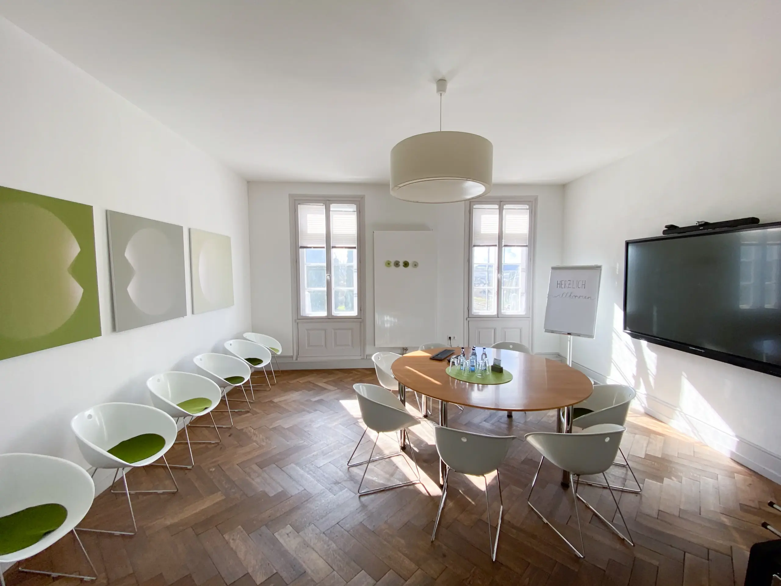 Unser Konferenzraum im 1. OG bietet den perfekten Rahmen für Meetings und Online-Konferenzen. Ruhig, modern ausgestattet und flexibel buchbar – für effiziente Gespräche und professionelle Termine.