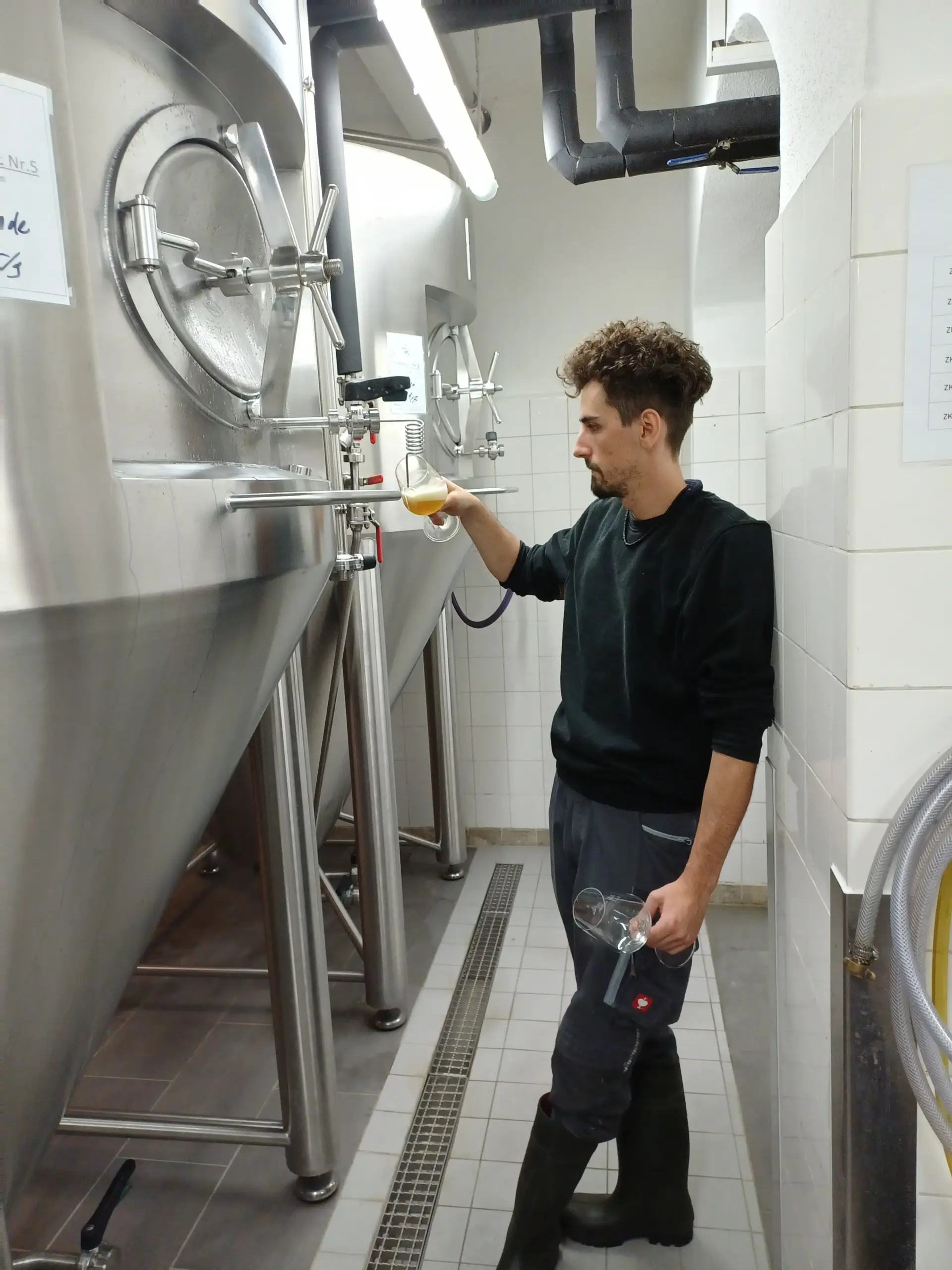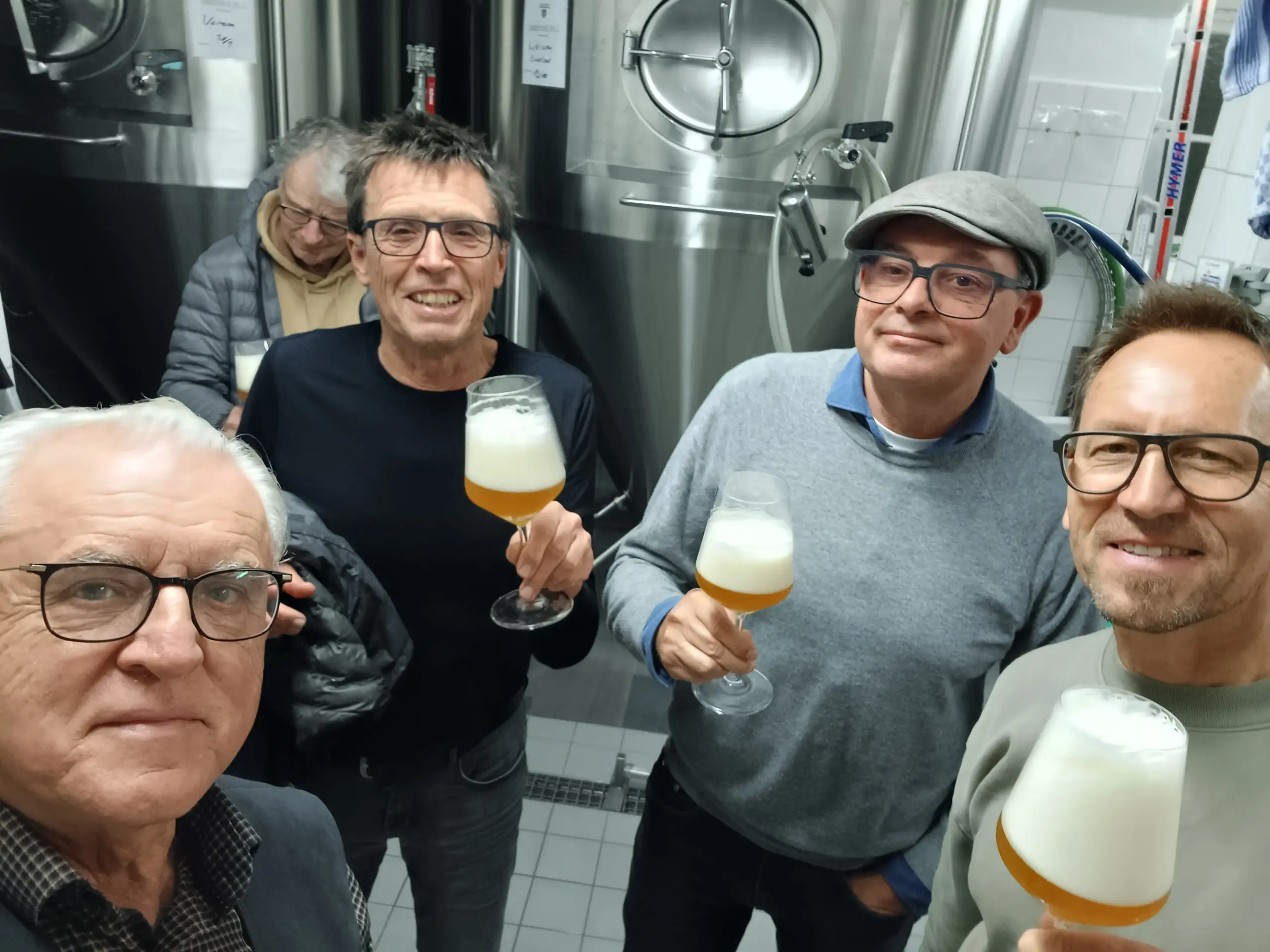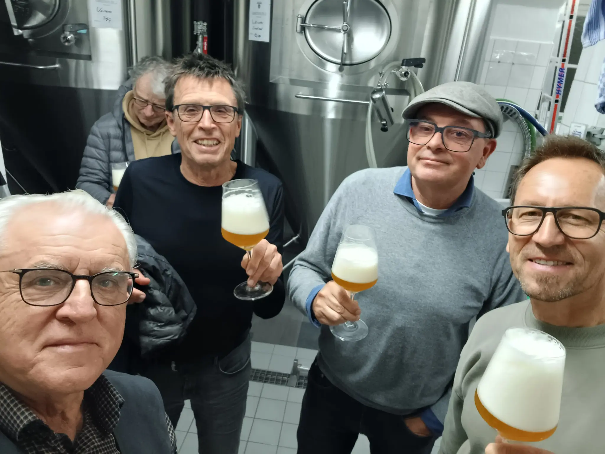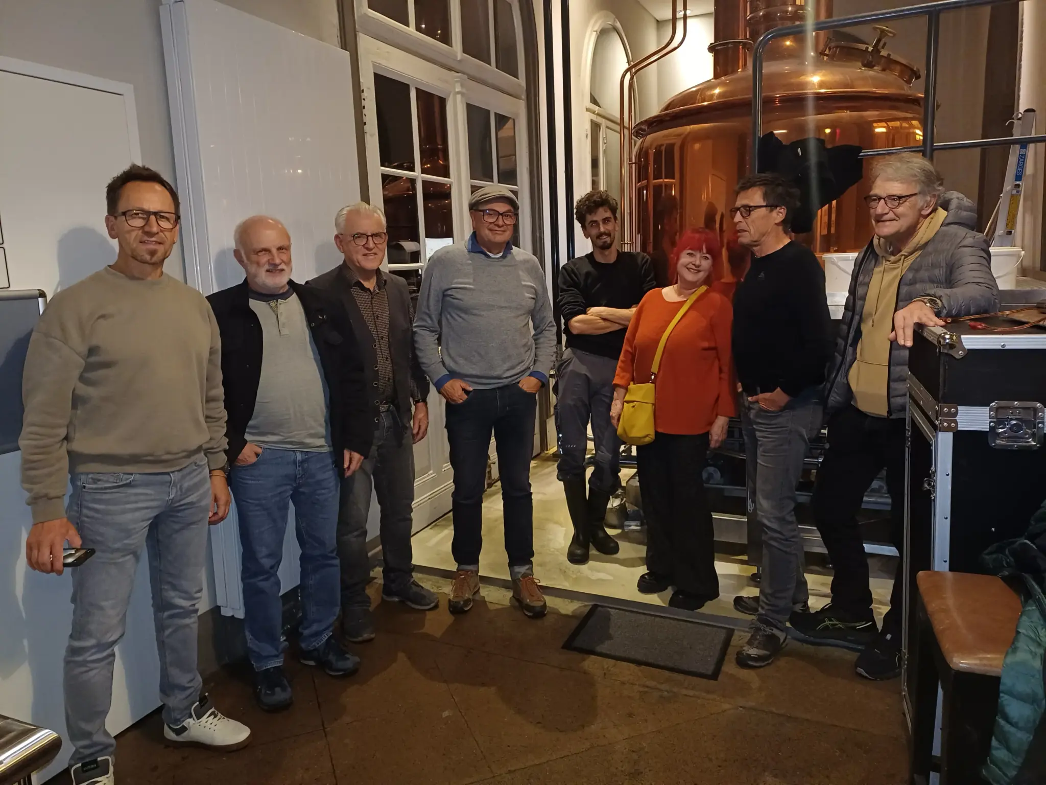 Gegen 18:45 Uhr führte David die Gruppe in den Keller, wo er die kleine Brauerei zeigte und anschaulich den Ablauf des Bierbrauens erklärte – vom Malz bis zum fertigen Bierglas.